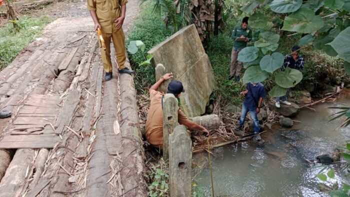 “Sekitar Juli 2024, jembatan mulai ambruk akibat tergerus derasnya aliran air. Saat itu masih bisa dilewati kendaraan roda dua, tetapi kendaraan roda empat sama sekali tidak bisa melintas,” ujar Abah Uding.— (ua muhi/red)