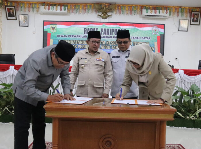 Tanah Datar, Bantengate.id – DPRD Tanah Datar bersama Pemerintah Kabupaten (Pemkab) Tanah Datar menandatangani Nota Kesepakatan Perubahan Kebijakan Umum Anggaran (KUA) dan Perubahan Prioritas Plafon Anggaran Sementara (PPAS) Tahun Anggaran 2025 dalam Rapat Paripurna di Ruang Sidang Utama DPRD, Kamis (14/8/2025).